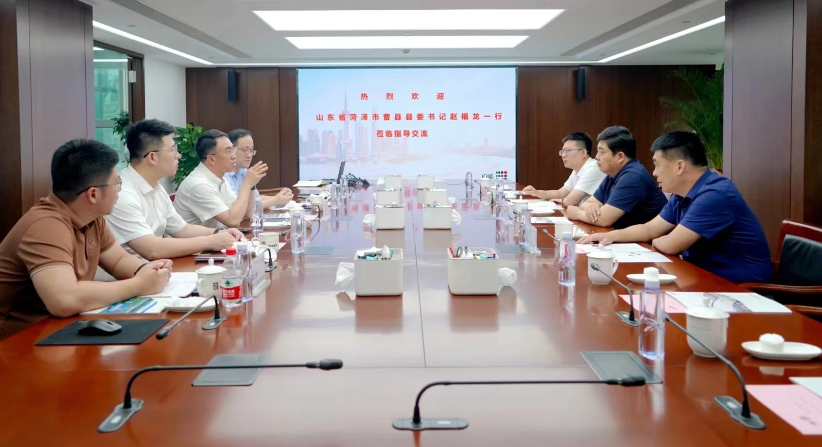 6月30日上午,,,,,,,集团董事长丁骥会同申能新能源党委书记金风保在申能国际大厦24楼与山东省菏泽市曹县县委书记赵福龙举行座谈交流。。。。。。